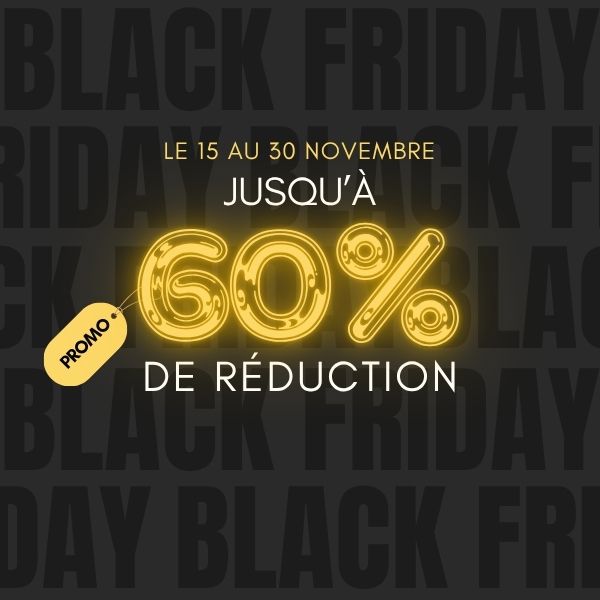 Promo BLACK FRIDAY, jusqu'à 60 % de réduction
