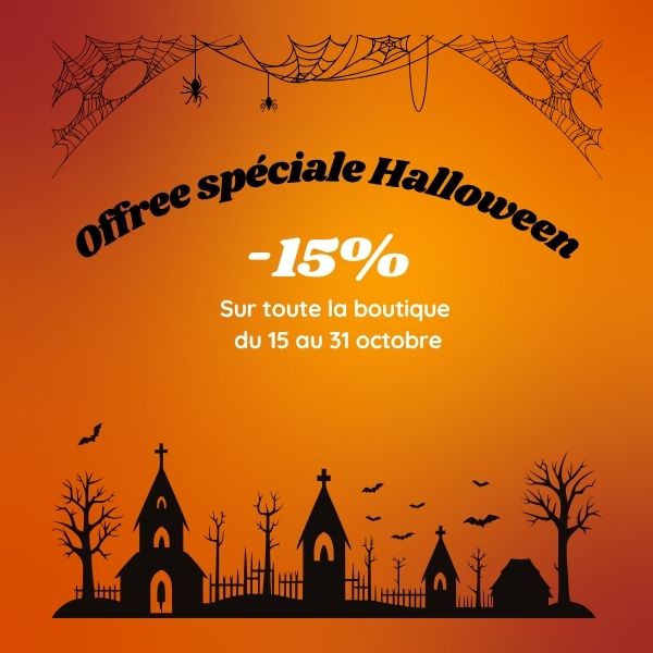 Halloween : profitez de 15% de réduction sur toute la boutique. Jusqu'au 31 Octobre